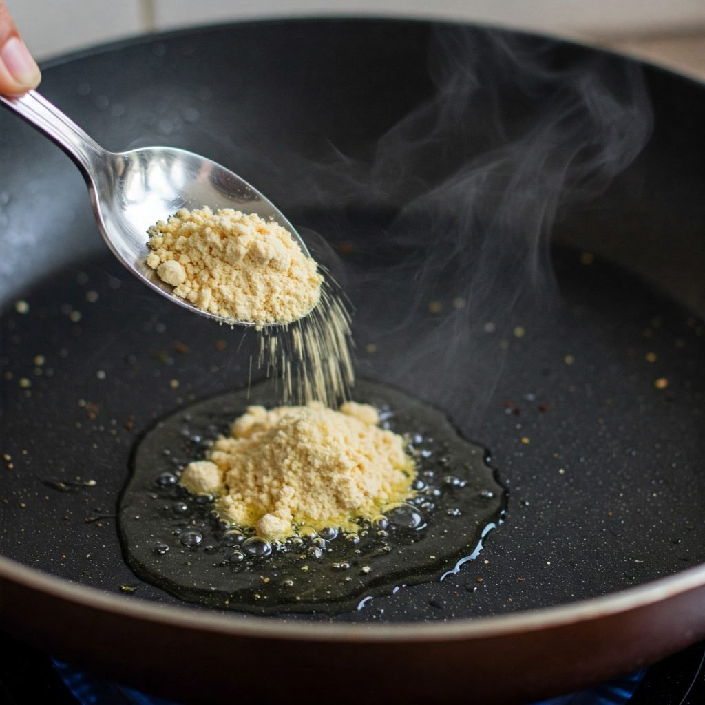 Add 1-2 spoon of besan and roast it until golden brown.