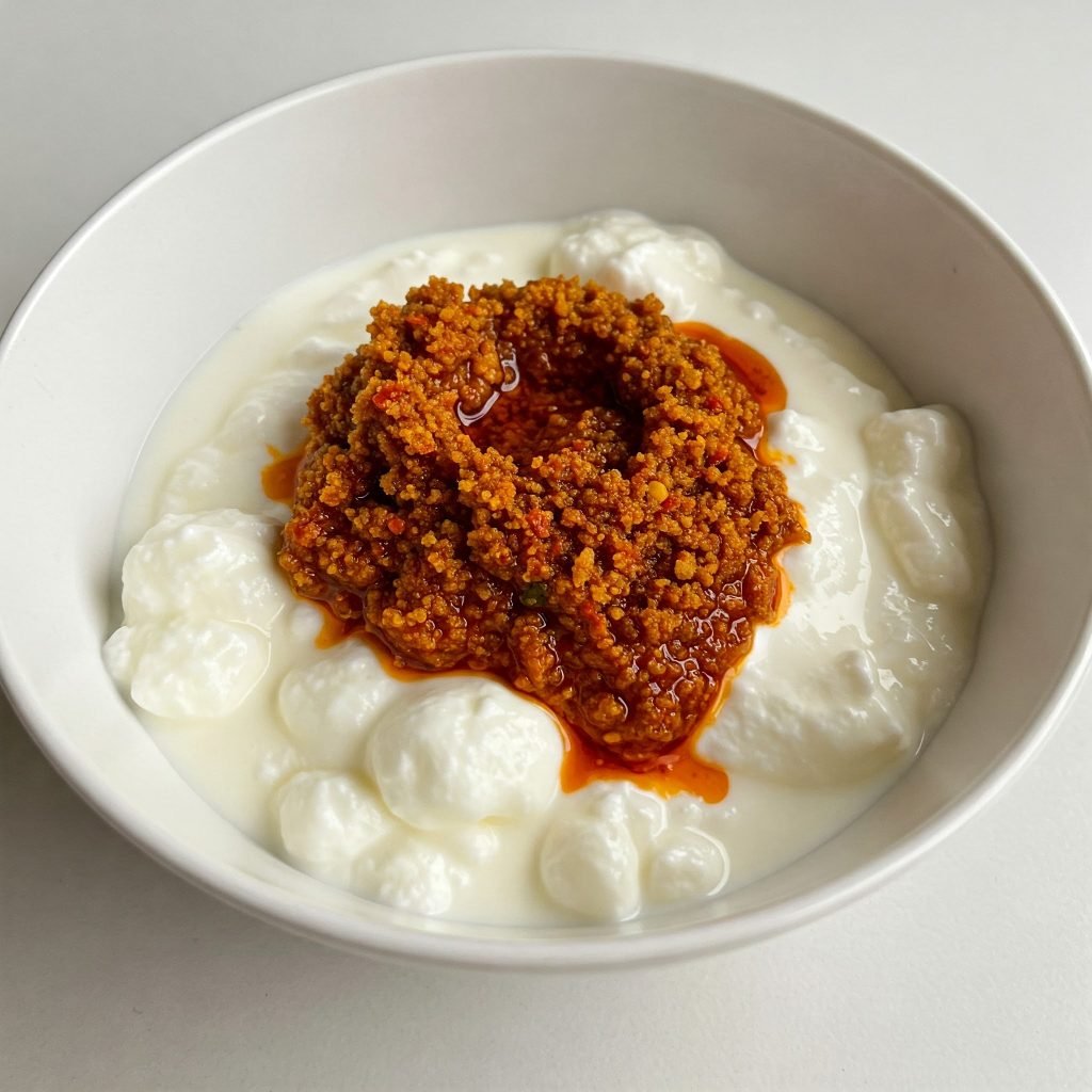 Add 2-3 tablespoon of thick curd in a bowl and whisk it well.